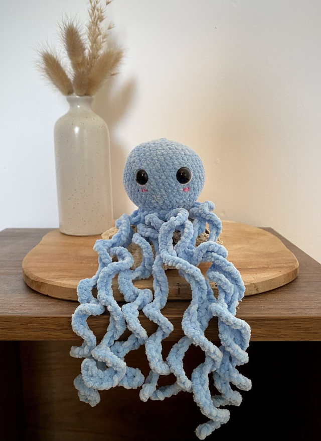 🐙 PELUCHE POULPE AU CROCHET TAILLE MEDIUM BLEU CIEL 🧶